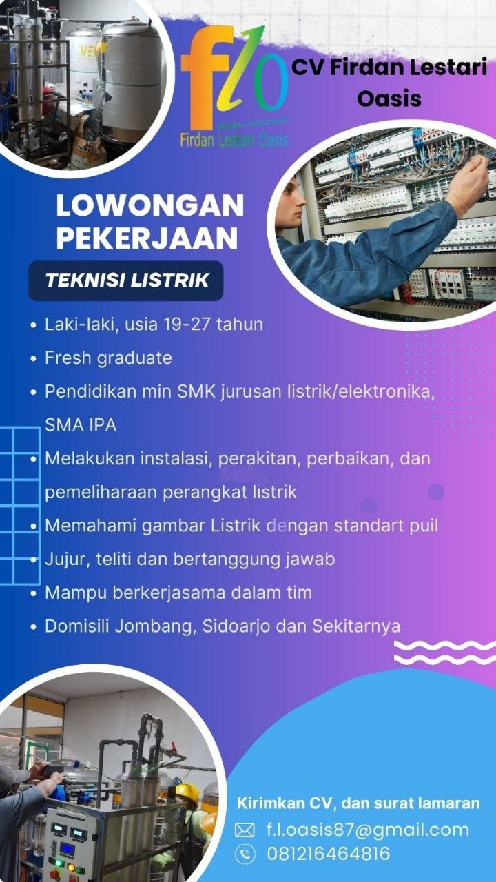 Dalam perkembangan Teknologi sejalan dengan perkembangan jumlah Manusia di Bumi, sektor vital untuk keberlangsungan hidup antara lain Makanan. Sumber Makanan terutama dari alam yang dikerjakan oleh Petani, Pekebun sangat bergantung pada pemenuhan air yang laik sebagai media transfer nutrisi dari tanah dan udara untuk menghasilkan peoduk yang melimpah. Tidak Hanya Itu, Manusia juga terdiri dari 70% dari cairan. Sehingga untuk pemenuhan kebutuhannya, air yang laik konsumsi juga harus terjaga. Dari ini Berdirilah CV Firdan Lestari Oasis ( singkat FLO ), perusahaan yang awal bergerak dalam bidang Jasa konsultan untuk segala proses pengolahan air, mulai dari Air Limbah, Air Minum, Air Bersih, Air Proses dan lain-lain.